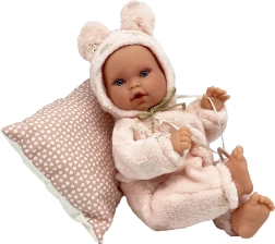 The Antonio Juan Kika doll is a hand-crafted baby that stands out with realistic details, a gentle expression, and a soft outfit. The internal support allows the baby to assume natural positions – it can cross its legs, join its palms, or lie like a real baby. The soft fabric body invites cuddling, while the vinyl parts ensure durability and faithful detailing.