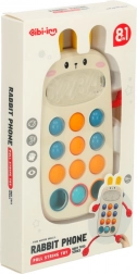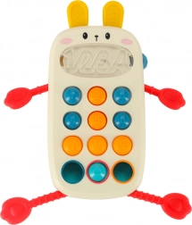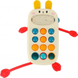The Bibi-inn phone–teether is designed for little explorers. Kids will love the rubber buttons with a pleasing “pop” effect, the sliding bead, and the mini maze with beads, all of which support hand–eye coordination and patience. The soft silicone parts (strings and ears) serve as a safe teether, helping soothe the child while also practicing grip.