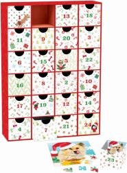 The calendar includes 24 different puzzle images with Christmas dog themes, bringing a new fun experience every day.