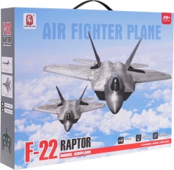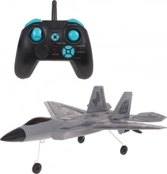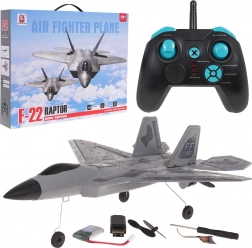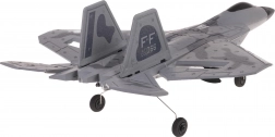 The F-22 is suitable for outdoor use and offers a flight time of about 10 minutes thanks to a 3.7 V battery included in the set. The remote control operates on a 2.4 GHz frequency, ensuring smoother and more stable control.