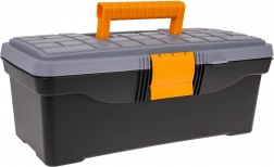 The large box with a comfortable handle and sturdy latch keeps the whole set tidy and easy to carry. Robust plastic withstands everyday play.