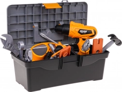 This children's tool set offers everything a little builder needs: a large toolbox, safety goggles and mask, a hammer, screwdriver, pliers, wrenches, and building parts with screws and wall plugs. Thanks to the high-quality plastic, the set is lightweight, durable, and ideal for pretend play.