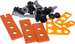 The main star is the interactive drill powered by 2× AA (not included). It can screw and unscrew, has interchangeable bits (flat, Phillips, and drill bit) and a removable “battery pack”. Great for developing hand–eye coordination, patience, and imagination.