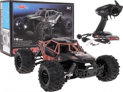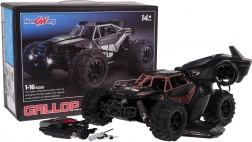 The durable RC crawler GALLOP in 1:16 scale offers 4x4 drive, a metal body, and high-travel suspension for demanding terrain. Large rubber tires and LED lighting ensure great capability even after dark. The 2.4 GHz control is stable and interference-free.