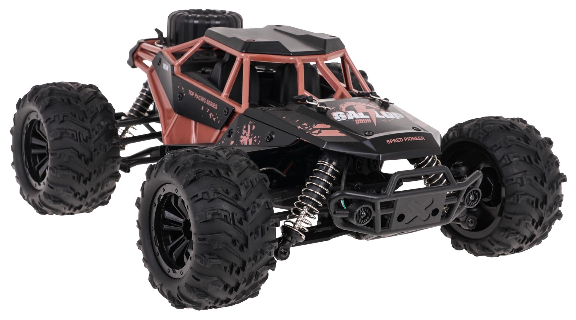 GALLOP is a robust off-road RC car designed for fun both indoors and outdoors. The metal body and collision-resistant construction increase the model’s durability, while independent spring suspension and large wheels handle bumps, rocks, and obstacles. Thanks to the LED lights, you can keep driving even after dusk.