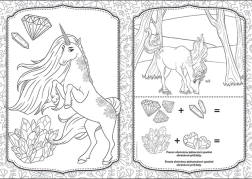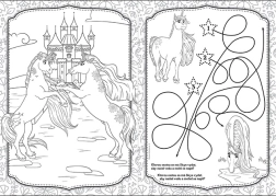 The coloring book contains 16 black-and-white pages with pictures to color and popular activities.