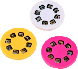 Includes three colorful plastic disks with multiple images, which can be easily changed for varied projections.