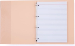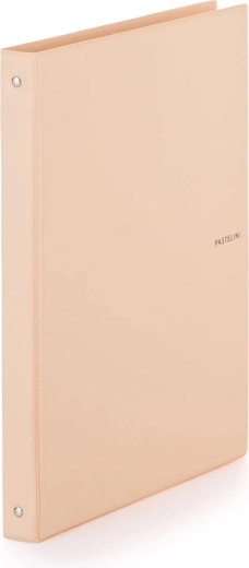 Stylish Pastelini A4 ring binder in apricot with a durable PVC cover. Features a 4-ring mechanism for a secure hold and 100 ruled sheets in the starter refill—ideal for school, office, and home organization.