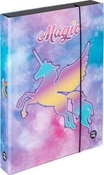 A4 Jumbo Notebook Box OXY GO Unicorn is perfect for all students who want to keep their notebooks and papers safely stored. Made from durable laminate and equipped with an elastic band closure.