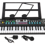 Keyboard, power adapter, microphone, music stand