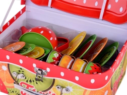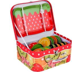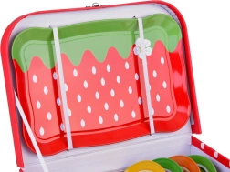 The entire set is stored in a sturdy suitcase with a fruit motif. Kids can easily tidy up their gear and take the tea set anywhere.