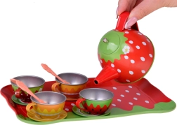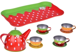 The metal teapot, cups, saucers, and tray are lightweight, durable, and fit perfectly in little hands. The strawberry design adds a magical touch to every tea party.