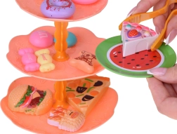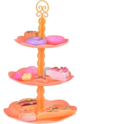 Serve toy goodies on the stable three-tier trays – cupcakes, donuts, or pizza. Ideal for pretend bakery play and developing imagination.