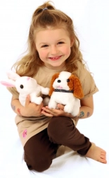 Adorable interactive puppy Max from Teddies will delight every child. He can walk forward and backward and makes realistic barking sounds. He’s pleasantly soft for cuddling, lightweight for little hands, and comes in a box that serves as a stylish doghouse. Ideal for imaginative play and as a first plush friend.