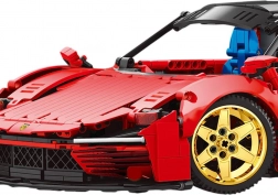 The red sports car building kit is a perfect choice for all car lovers and fans of constructive challenges. The model features opening doors and a fold-down rear section, adding to its authenticity.