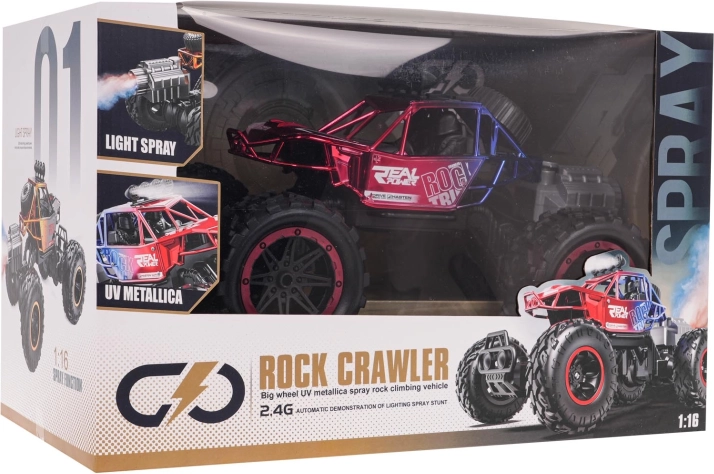 Powerful RC Rock Crawler in 1:16 scale with large rubber tires, 2.4 GHz control, and an eye‑catching smoke effect with LED lighting. A durable anti-collision design, high chassis, and smooth steering ensure fun on any surface.