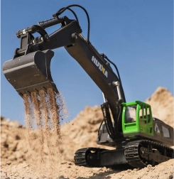 The 2.4 GHz remote control provides full control of all excavator functions, including movement, turning, and bucket operation.