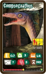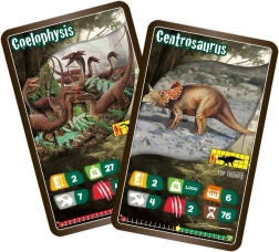 Illustrated cards with dinosaur statistics