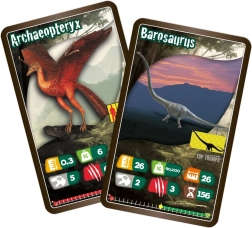 Each card offers a detailed illustration and clear stats (e.g., length, weight, speed), making the game both a fun comparison challenge and an educational experience.
