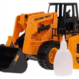 The bulldozer features moving parts like a lifting and lowering bucket, enabling dynamic and realistic play.