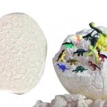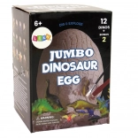 The egg measures 10 cm x 10 cm x 15 cm and contains 12 dinosaurs.