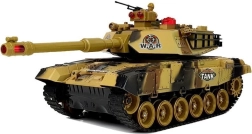 Discover the fun with a realistic RC tank in yellow‑black camouflage. With 2.4 GHz control, LED lights, firing and engine sounds, and rubber tracks, it delivers smooth driving and thrilling battles. The tank can pivot in place 360°, has a rotating turret, and a recoil effect when “firing” – a perfect choice for young fans of tech and military vehicles.