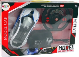 The technical setup lets you control the car with a steering wheel–shaped remote, accelerate or brake using the included pedals. Connecting the pedals to the wheel is easy with a cable. The car is approximately 24 cm long and is powered by AA 1.5V and AA 1.2V batteries.