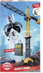 A robust VOLVO toy crane by DICKIE TOYS standing 110 cm tall with a wired remote control brings realistic construction play. It offers 360° boom rotation, lifting and lowering loads, load travel along the boom, and a wrecking ball with grabbing function. Great for developing hand–eye coordination and fine motor skills in children aged 3+.
