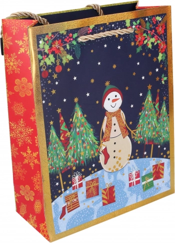 A stylish medium Christmas gift bag measuring 26 × 32 × 10 cm makes wrapping easy and adds a festive touch. It offers sturdy construction, a practical format, and 4 attractive Christmas designs.