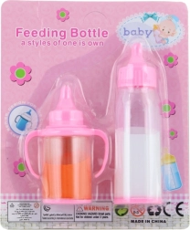 Set of bottles with food for a doll. Plastic material. Contains liquids. Carded packaging. Dimensions 17 x 14 x 3.5 cm. Age 3+
