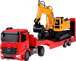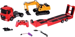 Delight young builders with this amazing remote control construction set from Mercedes-Benz, offering realistic fun with a truck, trailer, and excavator at a 1:26 scale.