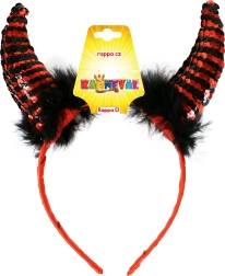 Dazzle at a carnival or St. Nicholas celebration with a stylish accessory – a headband featuring devil horns adorned with dazzling sequins and soft feathers. The lightweight satin headband sits comfortably on the head and gives your costume a striking, charming effect.