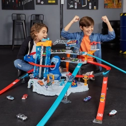 Get ready for a gorilla attack with the largest set of ZURU Metal Machines! This multi-level construction revs up racing cars to the max and ensures a dose of adrenaline. With parking spaces and car stalls, including an elevator, it offers optimal space for up to 20 vehicles.