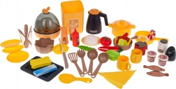 The kitchen also offers a chalkboard for writing recipes or shopping lists, an openable fridge, an oven, and many shelves for storing food. Detailed equipment includes, for example, an egg cooker with a turnable part and a music panel with buttons for playing melodies.