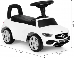 The children's ride-on Mercedes C-Class is a great choice for young drivers who want to learn the basics of safe movement and develop their motor skills. Thanks to the licensed Mercedes-Benz design, it offers realistic details such as the grille, lights, and hood shape.