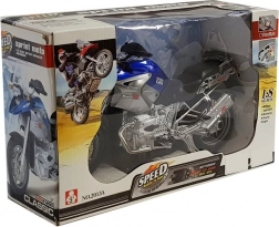 The motorcycle measures 28 × 19.5 × 8 cm; the packaging measures 32.5 × 22 × 13 cm. Thanks to its practical size, the bike is ideal for the kids' room and on the go.