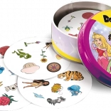 Dobble Disney Princesses is a captivating game that transports players into the world of Disney princesses. It includes 57 different symbols, 55 cards, and each card features 8 images. The uniqueness of every round lies in the fact that any two cards share only one image in common.