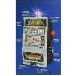 How does the Jumbo slot machine work? All the little player has to do is place a coin in the designated slot and pull the lever on the side of the machine. Once set in motion, three reels with casino-themed symbols begin to spin. If the symbol combination is correct, coins will shoot out of the machine—if not, the child can try again and get them back on the next lucky spin. Coins can also be removed from the machine independently. Fun isn’t the only function—this large-format toy hides a coin box. There is a coin slot on the back of the machine, so your child can sensibly manage their winnings.