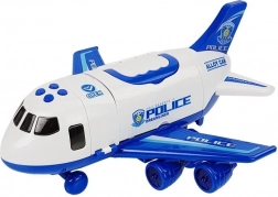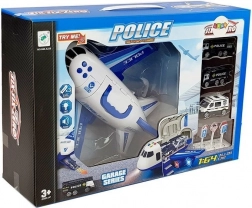 Discover the fun of a fold-out police plane that carries mini cars and traffic signs. With light and sound effects, a friction drive, and storage space for cars, kids will enjoy hours of creative play and action-packed police missions. Scale 1:64, safe and durable design, ideal for young fans of police and aviation.