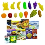 - vegetables: - cans and packages: tuna, coffee, pizza, chicken nuggets, cat food, hot dogs, cookies, curry, steaks, and fish fingers.