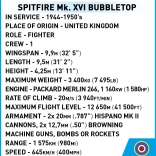 The Supermarine Spitfire Mk. XVI Bubbletop is one of the variants of the legendary British fighter aircraft used during World War II. This model, introduced in 1944, offers improved visibility thanks to the bubbletop canopy and a maximum speed of up to 676 km/h. It was equipped with two 20 mm cannons and four 7.7 mm machine guns, making it an effective escort and reconnaissance fighter. Its performance and visibility enhancements made it an efficient tool for air combat in the later stages of the war.