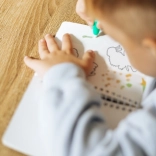 Just unscrew the brush, fill it with water, and start coloring the pictures. Once dried, the image disappears again, allowing for repeated use.