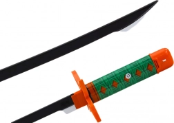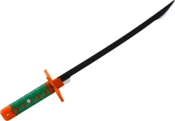 This samurai sword for children faithfully imitates the legendary Nichirin style — it has a black blade and an orange‑and‑green handle with a geometric pattern for a firm, comfortable grip. The safe plastic blade with a length of approx. 40 cm and a handle of approx. 15 cm supports safe, creative play.