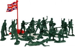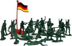 The set includes soldiers in three colors (silver, orange, green) and four flags (Germany, United Kingdom, USA, Japan) to support team division and spark imagination. Everything is made of certified plastic and meets the EN71 standard.