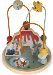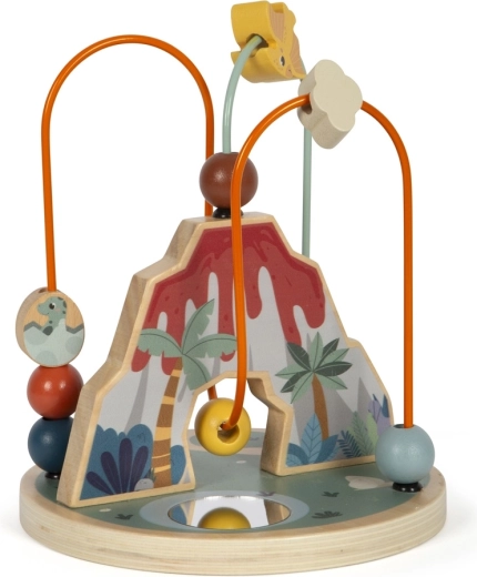 This bead maze with a dinosaur theme is the ideal toy for child development. Teaches hand-eye coordination and stimulates creativity, while captivating with its original volcano shape. The toy features two colored loops with various beads and a central mirror on the base, allowing everything to be seen from another angle.