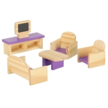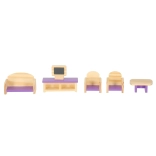 Treat kids to endless imagination with a complete set of wooden miniatures for the whole home. Furniture in modern purple tones looks great in any dollhouse and, thanks to sturdy craftsmanship, stands up to everyday play.