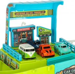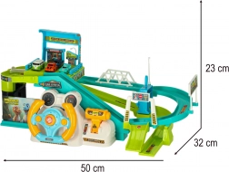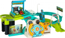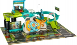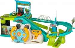 A fun interactive race track with a functional steering wheel, elevator, and four cars brings hours of action-packed entertainment for kids aged 3+. It supports fine motor skills, hand–eye coordination, and creative play. Thanks to sound effects, a city map, and smooth turns and descents, little drivers enjoy a realistic driving experience.
