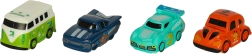 4 cars, steering wheel, elevator, track pieces for assembly, stickers, city play map