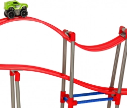 The green car included in the set is specially designed to handle extreme routes. Thanks to power from two AA batteries, it moves along the track on its own without any trouble.