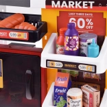 The supermarket is equipped with a candy shop, coffee machine, and fridge, adding authenticity to the play.